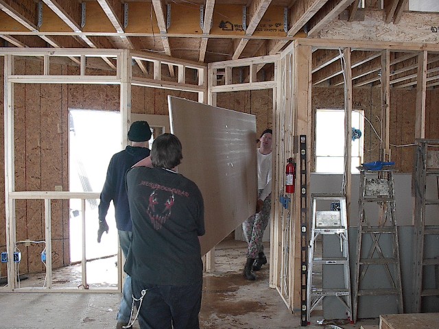 More drywall stacked against wall